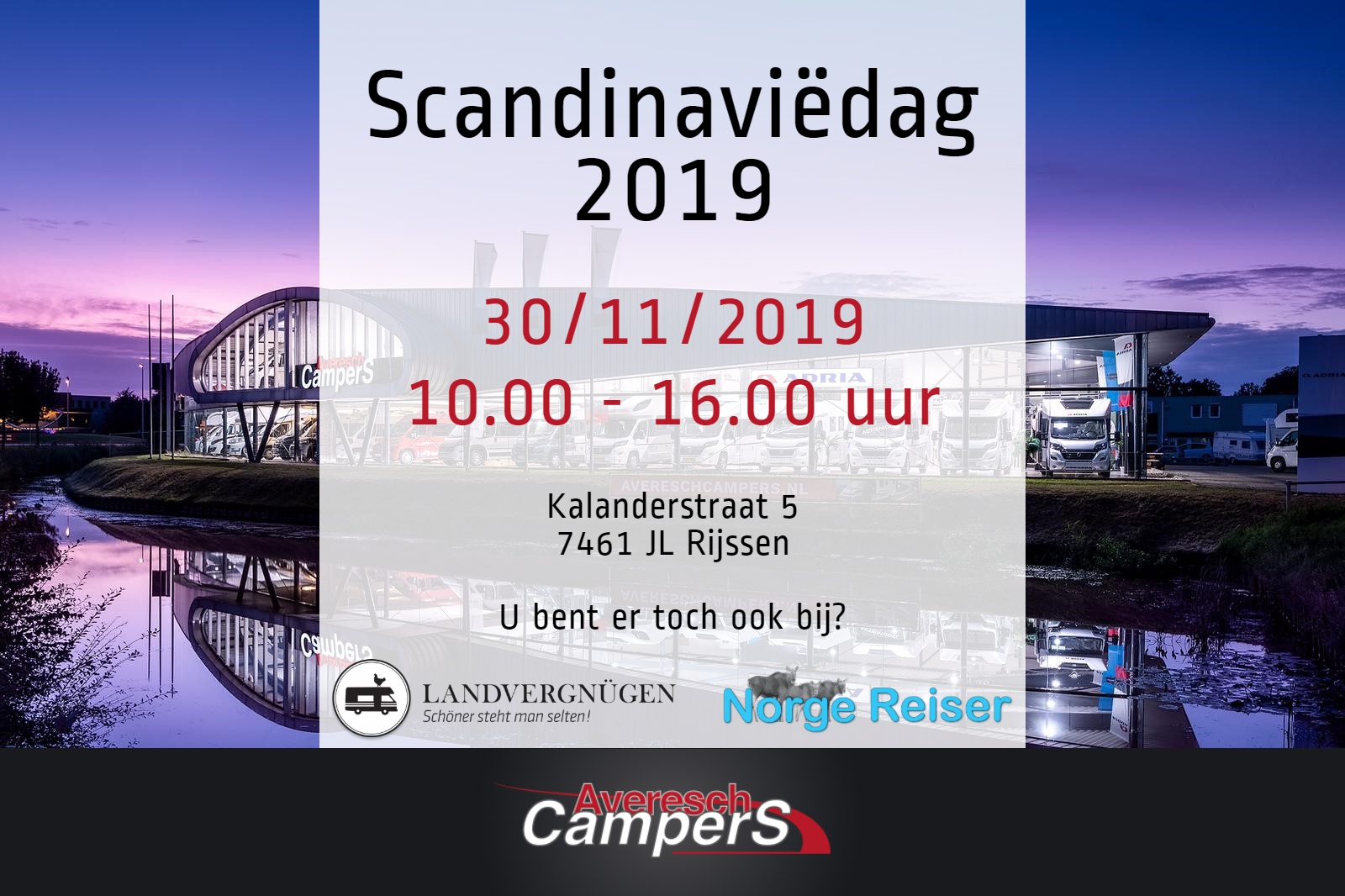 U bent er toch ook bij? Zaterdag 30 november van 10.00 tot 16.00 bent u van harte welkom bij Averesch Campers aan de Kalanderstraat in Rijssen.