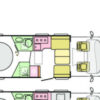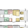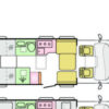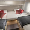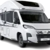 Coral Plus. Onze semi-integraal in de middenklasse met wit gekleurde polyester opbouw en keuze in cabinekleuren. Symphony White interieur ontwerp met bekledingskeuze en bijpassende decoratieve accessoires.